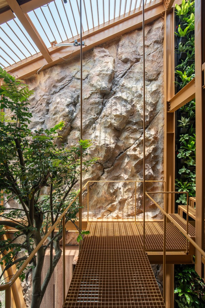 - Bức tường xanh: Chạy dọc từ tầng trệt đến mái, làm mát và lọc không khí tự nhiên.
